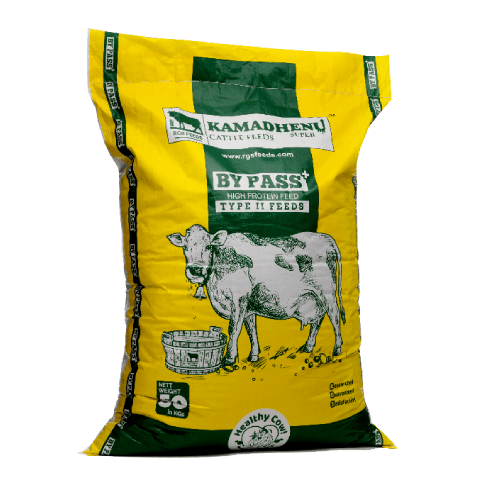 RGS Feeds offers a specially formulated BIS certified compound cattle feed, designed to enhance overall health, immunity, and milk production. Enriched with high-quality nutrients, our Kamadhenu Pro-Plus (Lactoplus Bypass formula) provides the essential proteins and minerals to support digestion, fertility, and lactation. This balanced feed ensures sustained energy and long-term well-being, making it the perfect choice for farmers committed to superior cattle care.